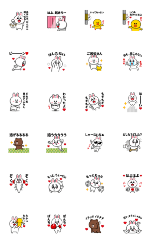 ブラウン&フレンズのLINEキャラクターズ、サリーとコニーとブラウンの毎日使える、日常会話の挨拶系、ラブラブスタンプ。大人向けの恋人やカップルで彼氏彼女のスタンプ。 ※BROWN & FRIENDS をみんなでつくろう!キャンペーン参加スタンプです4A-Studio(よんえーすたじお) より発売