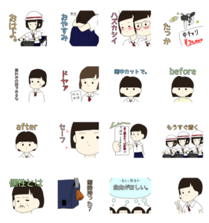 おかっぱ頭・眉上前髪・膝下丈スカート・くるぶし上靴下などなど、独特な校則の中で過ごした、中学生のスタンプです。ぽんぽこ より発売