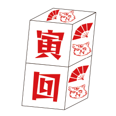 2022年(令和4年)干支はとら年(寅年)。寅系四角が回転して何か文字が出ます。年末年始正月や日常に。誕生祝は年男、年女の方に向けて使いやすいポップアップスタンプうどんみかん より発売