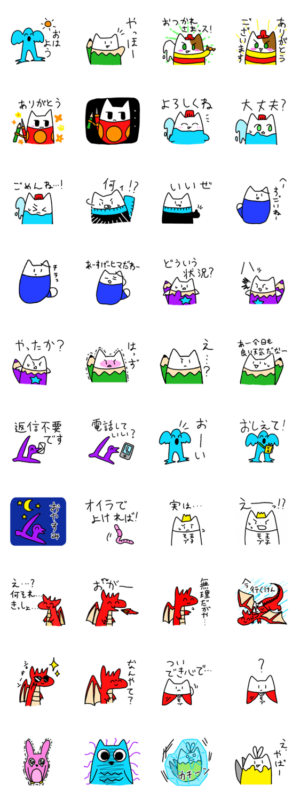 ネコ化した文房具たちと奇妙な仲間たちのスタンプです。 小学生が学校新聞のために生み出したキャラクターたちです。アーチャン より発売