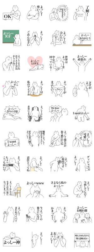 よっしーに送る名前スタンプ。 ヨッシーさん本人も使えます。吉田、吉野、吉山、吉原、吉川、よしき、よしと、よしひろ、よしまさ、よしかず、よしこ、よしみ、よしえ等