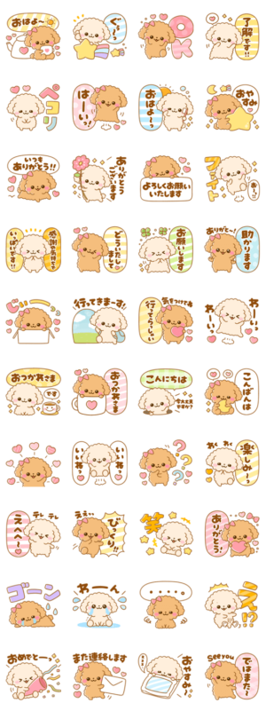 トイプードルのイラストがめちゃくちゃ可愛くて癒されます。スタンプの種類もたくさんあって大満足です。