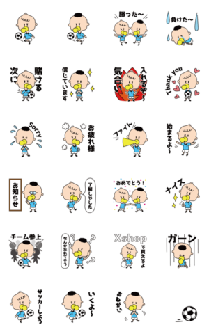 NPO法人エックススポーツのマスコットキャラクター“エックスベイビー”のスタンプです。エックススポーツ より発売