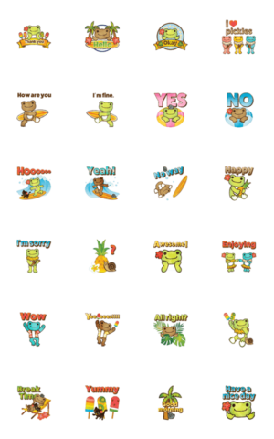 カエルとハワイアンが融合したイラストがめちゃくちゃかわいいです。これから夏に向けて大活躍しそうです。