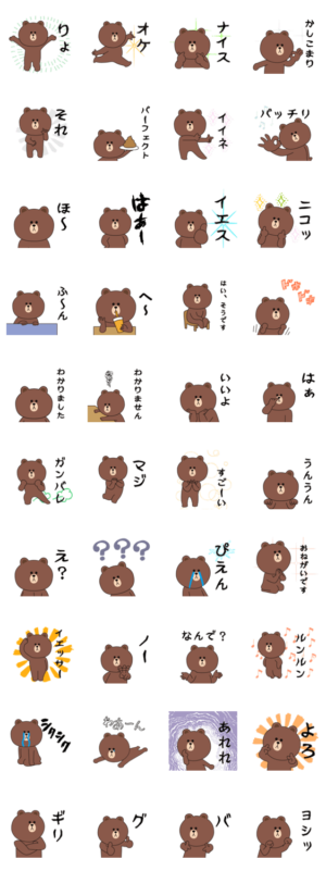 ブラウンの面白スタンプ3です。シンプルな言葉ばかりなので毎日使えます