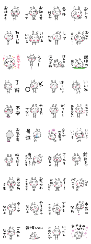 うさぎの表情がとても豊かなスタンプです。いろいろな用途なら使えます