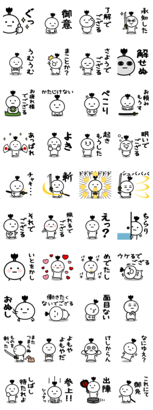 ちょんまげのついたまるいののスタンプです。侍の言葉など
