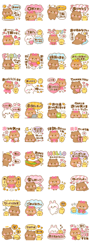 毎日使える言葉がいっぱい♪ブラウン・コニー・チョコとぴよこの大人可愛いカラフルなスタンプです。 ※BROWN & FRIENDS をみんなでつくろう!キャンペーン参加スタンプですぴよたぬき♡ より発売