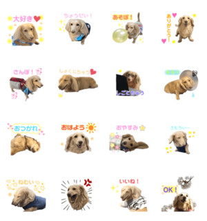 ミニチュアダックスフンドのメロンちゃんのスタンプです。かわいい表情をお楽しみください。Meron より発売