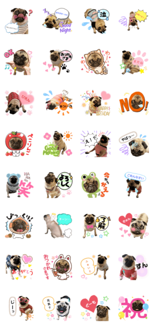 喜怒哀楽表情が豊かな愛犬のスタンプです。よろしくお願いします。pug_sakura より発売