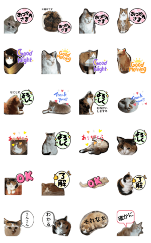 ねこたちのゆるいスタンプ。どら焼き栗まんじゅう より発売