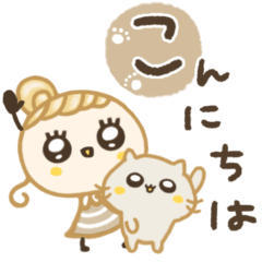 柔らかほっぺの、ほぺ美ちゃん◎ねこちゃんが遊びに来ました♪毎日便利な優しいくすみカラーのスタンプです。小さな幸せ/感謝