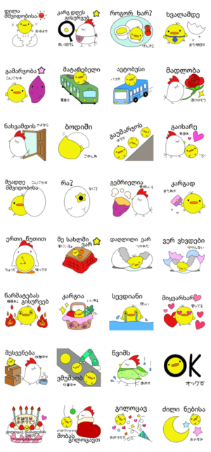 ぴよこファミリーのジョージア語(グルジア語)&日本語のバイリンガルスタンプです。あゆみるく より発売