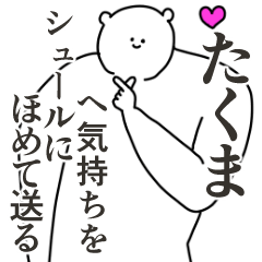 たくまくんに送れる、大好きな気持ちと誉め言葉をシュールに伝える。彼氏や友達や家族へ。自己肯定高めで本人も名前スタンプとして使えるかも。タクマ、琢磨、拓真など。