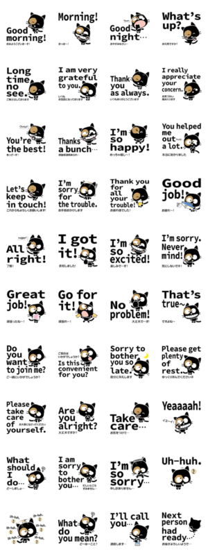 くろねこ「コテツ」 13 “英語で挨拶” スタンプ画像一覧