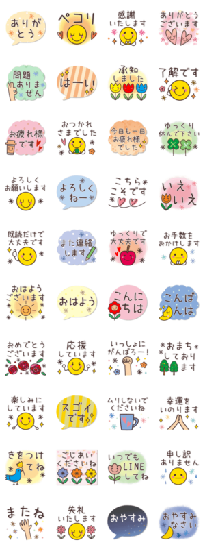 シンプルで毎日使いやすい、大人可愛いスタンプです。日常会話でよく使う言葉、敬語などを集めました♪HRYs より発売