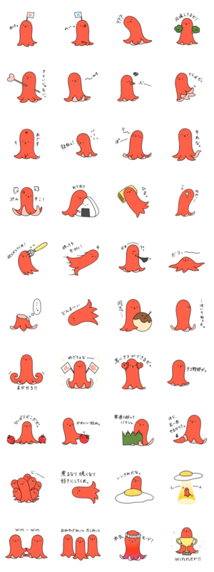 タコウインナーさんの日々あるあるなスタンプと言ったところです!