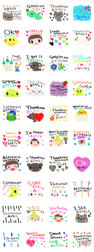 シンプルな日常会話スタンプです。日本語&英語スタンプ