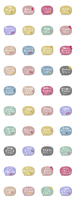 吹き出しが可愛い癒しスタンプです。種類も豊富で挨拶には困りませんね。