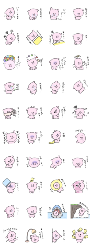 考えすぎているシュールなミニぶたのスタンプです。eribo より発売