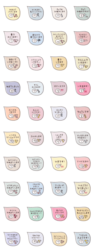 気持ちを伝える、1つあると便利な省スペーススタンプです。シンプル/かわいい/大人可愛い/くすみ/毎日使える/ふんわり/ゆる/吹き出し/スマイル/あいさつ/敬語/行事/ママ友