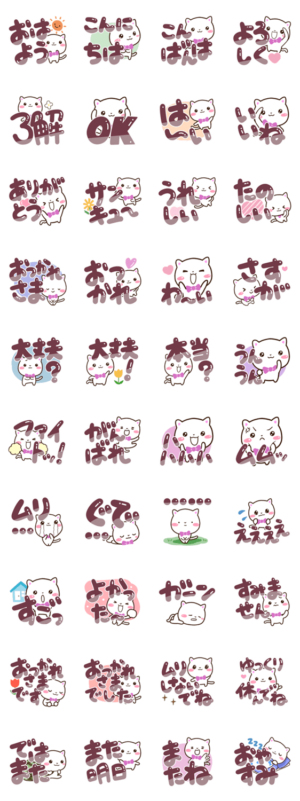 『シロネコすたんぷ』の大きくて目立つ、でか文字スタンプです。選びやすく、毎日便利な言葉の白猫スタンプ。しろねこ好きな方にぜひ。【かたこ】かたこ より発売