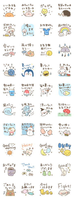 年中使えるお天気スタンプ。普段使いも出来るスタンプも入っています★かわいい/オトナ/日常/おしゃれ/シンプル/kaho より発売