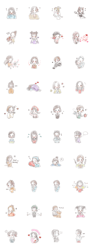 ふわふわした可愛い乙女たちのスタンプです。淡いパステルカラーの女の子らしいスタンプをたくさん詰めました。彼氏やお友達に!オシャレ/お洒落/かわいい/カップル/ハートほこり より発売