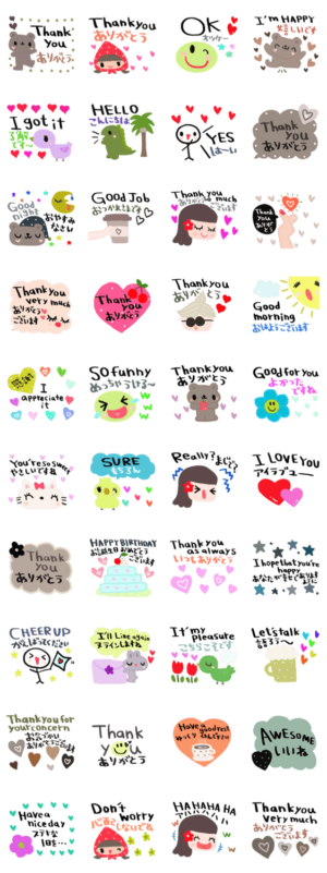 nenerin シンプル日常会話スタンプ212英語 スタンプ画像一覧