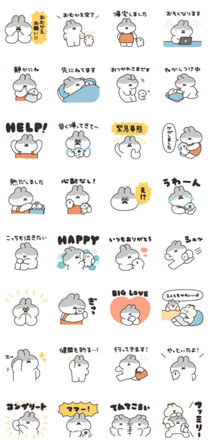 小さいうさぎとお父さんのスタンプです。ナポリ より発売