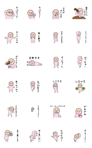 いつもの面白スタンプ(薄ピンクタイツ編)彼氏、彼女、イチャイチャ。大好きな人に早く送りたい