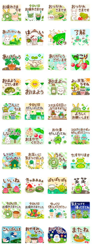 大人のための癒グリーン(緑)挨拶スタンプ2のダウンロードはこちら↓