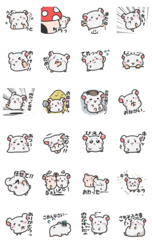 文字ありハムスターのハムむん(白) スタンプ画像一覧