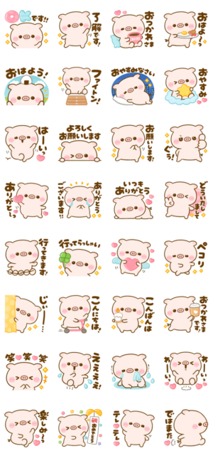 使いやすい言葉をたくさん詰め込んだこぶたのぽこちゃんのスタンプです。リアクションもいっぱいで毎日役立ちます♡ぴよたぬき♡ より発売