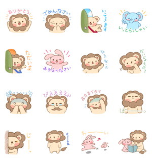 らいおんのさばんなと、おともだちたちの仲良しスタンプ。ベーシックな挨拶を追加しました。covanna より発売