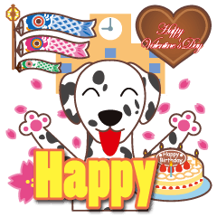 明るく陽気で警戒心が強いダルメシアンと車のバレンタイン&ホワイトデイなど、春のハッピースタンプです。