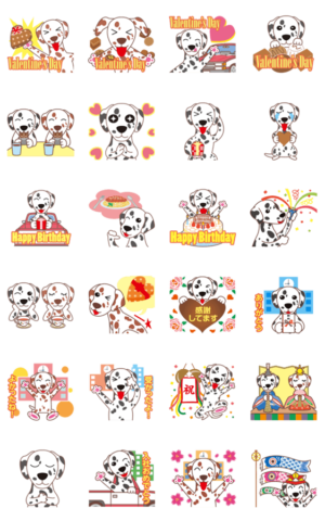 春のハッピースタンプ〜ダルメシアンと車 スタンプ画像一覧