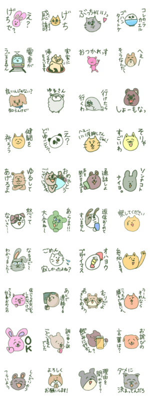 「げち」「ぶっちゃ」の言葉を流行らせたいという謎の野望を抱く友人Aと、小学生時代に描いたイラストが使用され黒歴史をえぐられている友人Bへ贈る為に作ったスタンプ。Chaky より発売
