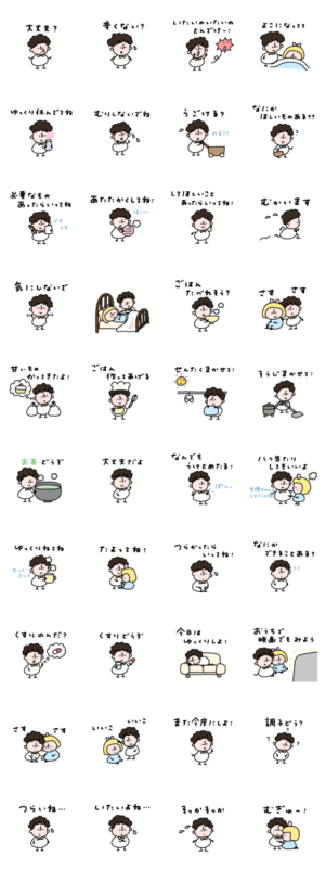 気遣うへんてこなばぶくんです。 中々気遣ってあげるのが苦手な男性諸君。 このスタンプでぜひ女の子を労ってあげてください☺︎bocunoe より発売