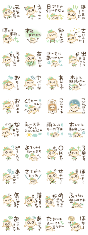 柔らかほっぺの、ほぺ美ちゃん◎関西人が使いそうな言葉を詰め込んだスタンプです。小さな幸せ/感謝あさごぱん より発売