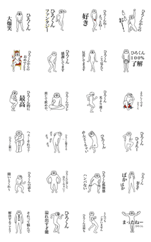 ひろくんが使える面白い動く名前スタンプ♪ひろき.ひろゆき.ひろと.ひろや.ひろみつ.ひろし.ひろみ.ひろあき.ひろまさ.ひろのぶ.ひろたか.ひろかず.ひろのり等ヒロさんへ♪ベルだぬき より発売