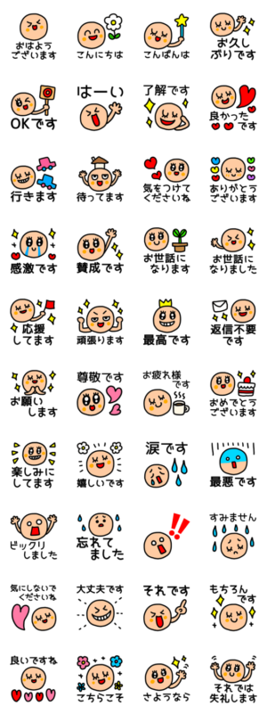 様々な場面で返答や挨拶ができる可愛いスタンプです。必要な時に使い勝手が良いのは素敵です。