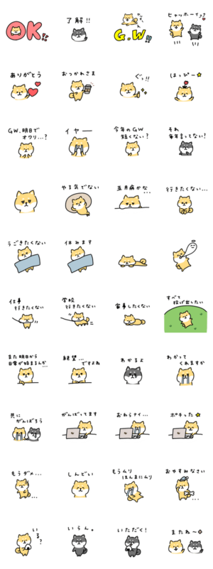 GWを楽しんだのちに五月病になったゆるい柴犬のスタンプです。うさやん より発売