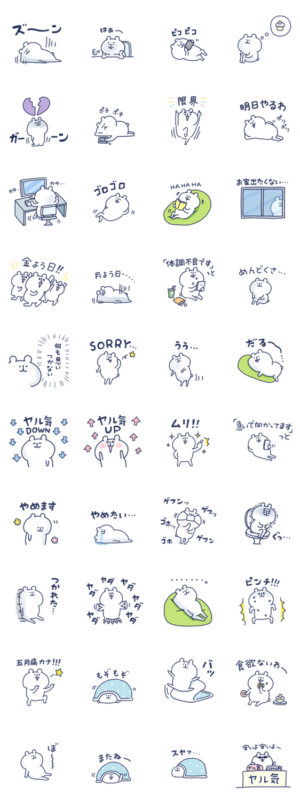 ダラダラ感が可愛いです。やる気が無いときに使いたいスタンプです。