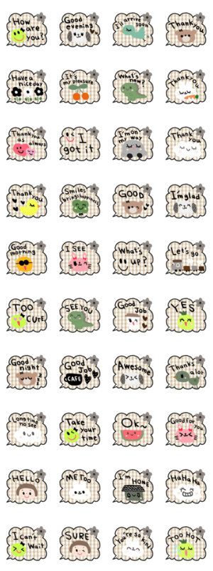 シンプルな日常会話スタンプです。英語スタンプnenerin より発売