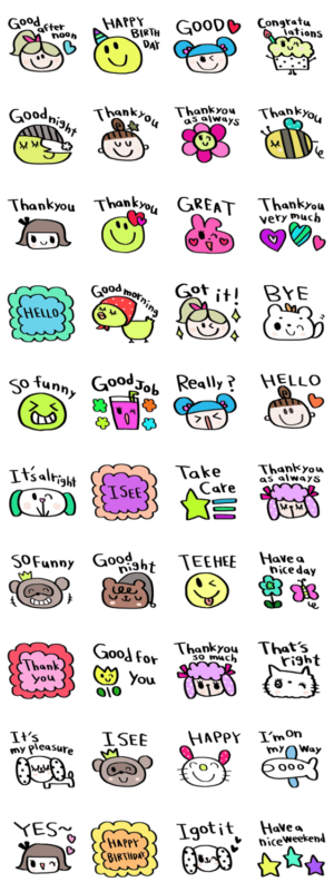 シンプルな日常会話スタンプです。英語スタンプnenerin より発売