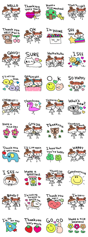 シンプルな日常会話スタンプです。英語スタンプnenerin より発売