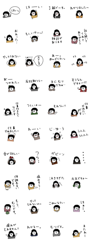シンプルで大人の女性でも使いやすいスタンプです。無気力。疲れ。苛立ち。五月病。大人の日常。仕事してる方やママ。他の方も。敬語。