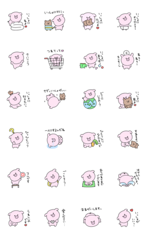 全部一緒がいい♡シュールなミニぶたの動くスタンプです。eribo より発売