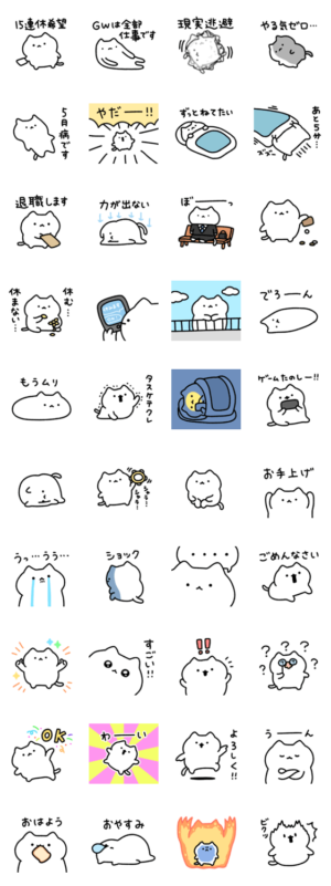 社畜だけどゆるっとしたい本音を語れるスタンプです。ねこさんが可愛すぎます。